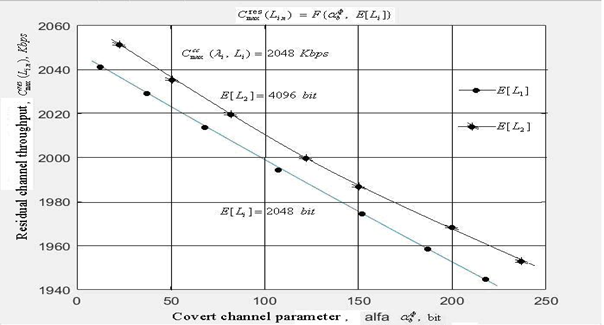 Based on the results modeling covert channel indicators, Figure 1 plots a graphical dependence of the maximum value of the residual system throughput on the covert channel parameter for a given indicator of packet-switched communication networks.