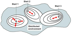 In the examples above, we used some hypothetical mosaics model in the form of regular two–dimensional network structure (with possibility of some nodes missing), just to show how some SGT and SGL mechanisms could work in principle in fully distributed environments. In reality for this DARPA mosaics concept, links between mosaic elements may be more complex, irregular, not fixed in advance, but rather appearing dynamically, at runtime. The examples in the following sections are just describing such situations where mosaic elements may be represented as separate manned or unmanned units trying to solve different problems cooperatively, with the help of SGT.