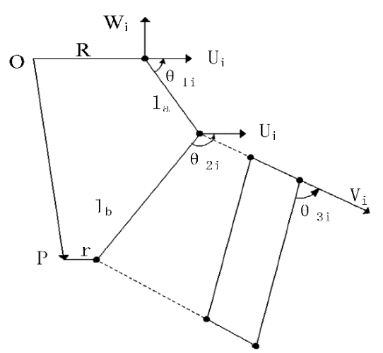 This leads to an unjustified complication of the study, since the coordinates of the attachment points of the lower links to the moving platform are determined by the standard procedure for multi-link manipulators by recalculating the coordinates of the subsequent node through the coordinate system associated with the previous one.