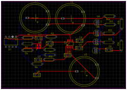 The purpose of this dissertation ended with the projection and construction of a printed plate. The modeling of the same was done in the program EasyEDA and components are organized according to the layout of the optical receiver. With regard to the printed plate, all components are easily identifiable. There is also the fact that the board is designed to operate independently of other devices due to the sources of tension. The two colors used, the red and blue, indicating the two floors of the plate. Requires two floors to get log all connections (Figure 12, Figure 13).