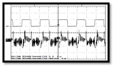 The tests conducted were performed at 100kHz and the 1Mhz. The received signal is 5V and demonstrates the value of the output signal of the optical receiver. With the increase of the frequency, the results are increasingly positive (Figure 14, Figure 15).