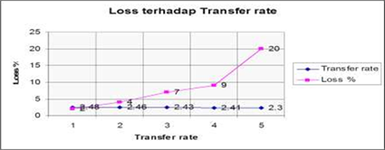 The effect of distance and the effect of the transfer rate speed will inhibit the speed of the bit energy to the receiver, causing loss of data transferred to the receiver with the loss of data, losses in Bit Energy, with loss of data as large as in table 4.3, cannot be retrieved because of that the data is repeated from the beginning again. In a Bluetooth system, it shows a frequency jump, each jump in the frequency of the packet data transfer interference that is sent during the jump. One packet will be lost for every 79 packets sent.
