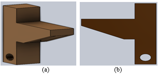With SolidWorks we designed the shape in Figure 2a, so we can place the wood part on it to connect between both of supports, and made hole on front plan so we can pass the belt through its Fig.2b and from side plane we made another hole so we can pass the screw through its Figure 2c.