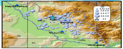 The territory of the Nakhchivan Autonomous Republic is located in the south-east of the Anatolian block, in the west at the junction of the Iravan and Saderak sloping plains, between the Arab and Eurasian plates, surrounded by the Darelayaz and Zangezur ranges extending to the north-west and north-east, and bordered by the Araz River in the north-west of Iran. Located in the central part of the continental collision zone. As a result of this convergence, the movement of the Anatolian block to the west and the movement of the Iranian block to the east is observed. Strong earthquakes that occur as a result of the resulting deformation occur along seismogenic zones bordered by active faults. The seismicity of the area and the tremors occurring in the Sharur-Ordubad fault is the result of this convergence. Earthquakes in this fault are mainly distributed at depths of 3-25 km.