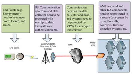 Therefore, to provide a secured AMI architecture, it is necessary to understand various types of threats/actors involved that may cause the failure of entire AMI system and vision of the smart grid. Figure 2 & Table 1 summarize the possible attacks in the AMI network with respect to the type of security and the level of threat.