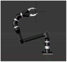 The first step is implementation of the JACO manipulator robotic arm, this arm has been drawn and implemented with the same specifications (links length, rotational angels limit for each joints) this specifications should follow the real arm design as shown in the Figure 1 the simulated JACO arm. After simulated the JACO arm in MORSE, some actuators and sensors should be added to the arm body. The bones are using for moving the arm as actuators; this bones have rotation about itself and about specific axis as shown in Figure 2. The chain of bones called armature, the armature plays very important objective in the simulation of the arm in Morse, this will be the main core for the movement of the skeleton:
