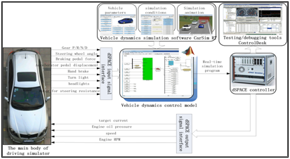 The driving simulator is reconstructed by a real A-class car with the aid of Carsim RT, MATLAB/ Stimulant, and DS1103 real-time simulating system from space. Detail descriptions of the driving simulator are shown in Figures 2 & 3. DS1103 as the core of hardware platform collects the driving manipulations on real-time for the carsim dynamic model, and the calculated steering resistance moment is sent to the real A-class car for road feeling simulation by CAN bus. Control Desk as the debugging tool can monitor the total status of the experiments (Figure 2). Framework of the driving simulator (Figure 3). Driving simulator the road is designed in the Carsem RT, and its geometric alignment is shown in Figure 4 it is made up of many straight-aways and bends. The straight-aways are set for drivers to adjust the vehicle position on the road and vehicle speed before steering. The bends are set for drivers to implement the steering manipulations as the way they feel good. The road length is 2234.5m. And the road elevation is set to 0. There are two lanes, each of whose width is set to 3.6m. There are other traffic vehicles, houses, trees, and traffic cones along the road. Drivers can hear engine roar while accelerating and brake squeal noise while braking. A motor provides steering resistance for drivers. All these help to make drivers feel driving a real vehicle on real road (Figure 4). Geometric alignment of experiment road