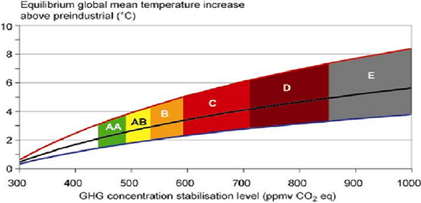 The concentration of CO2 starts to decline before reaching the critical limit of 450 ppm and global temperature increases <1.5℃ without serious long-term damage to the climate.
