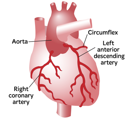 Figure 1 Diagram of Coronary Arteries, including the RCA and LCA.77 The image shows the heart with the Right Coronary Artery and Left Coronary Artery marked.