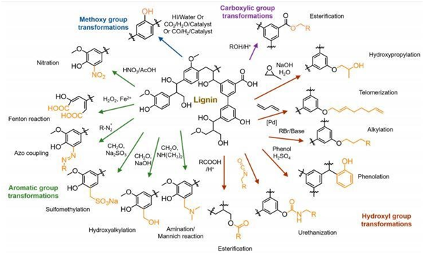 Figure 3 Different pathway for chemical treatment on lignin described by Ganewatta et al.27