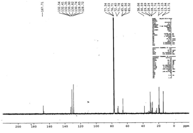 Melting point and m.m.p. of the compound were recorded. Spectral data were collected by using UV-Visible Spectrophotometer (1800, Shimadzu, Kyoto, Japan), Fourier Transform-Infrared Spectroscopy (FT-IR) (equipped with L1600400 Spectrum Two DTGS, Perkin Elmer, Massachusetts, USA), 1H NMR and 13C NMR AV 400-Bruker 400 MHz High Resolution Multinuclear FT-NMR Spectrophotometer (Massachusetts, USA), and GC-MS 7890 A, MS 5975 equipped with HP 5 MS column (Agilent, California, USA). The data thus collected were used to elucidate the structure of the compound.
