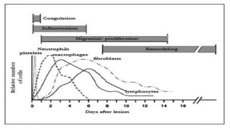 Wound is the breakdown of the structure and normal functions of the integument and its healing process. It refers to a cascade of events that begins with the trauma and ends with the complete and organized closure of the wound with the scar tissue.1-3 The skin is one of the organs most susceptible to injury and needs regeneration to restore its structure and functions, such as protective physical barrier against various environmental stimuli and infections and against excessive water loss.3-5 According to Broughton et al.5 after the skin damage, the wound process is common to all wounds, regardless of the causative agent, being systemic and dynamic and directly related to the general conditions of the organism.6,7 Wound healing is classically divided into three stages: