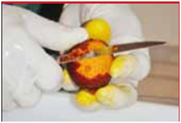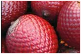 Mauritia flexuosa and a dioecious palm with flabelliform leaves when adult, are characterized by being tall, with up to 30m and 20-50 cm in diameter, of solitary and smooth stem. In the Cerrado, it flourishes in the months of March to May and presents fruits almost all year. The reddish-brown, oblong-globose fruits, measuring five centimetres by four centimetres, pericarp covered by overlapping scales of about six millimetres, meaty mesocarp, usually containing a seed. The seeds of M. flexuosa can be classified as recalcitrant and the emergence of the seedlings occurs between three and four months after sowing. Seedlings are slow growing and fruit production can take seven to eight years. The buriti growth is slow, this palm has a single trunk and presents difficulties for vegetative reproduction, since it demands a great amount of water for its satisfactory development. In order to be cultivated in crops, this species presents great limitations and sustainable management techniques should be encouraged and improved, as the areas of buriti occurrence are considered Permanent Protection Areas (APP), which is a place where all forests must be maintained and other forms of natural vegetation and should not be modified to other types of occupancy.60-62 The buriti (Mauritia flexuosa L.) popularly known as Canada-guaçu, smell of coconut, miriti, palm of the marsh, among others, is a palm tree of the family Arecaceae, native of Brazil, with great socioeconomic potential. Normally, its occurrence is associated to areas that are periodically or permanently flooded or poorly drained, sometimes close to rivers, along forests of galleries and savannah (Central Brazil and Venezuela). The fruit (Figure 2) is enveloped by a pericarp (or bark) composed of reddish brown triangular scales and is elliptical to oval. The mesocarp (pulp or mass) is thin, yellowish or orange, fleshy and oily. The pulp has a pH of about 4.7 and is 20 times richer in vitamin A than carrots, as well as being very rich in oils, especially in pulp and shell, in proteins and in vitamins C and E.63