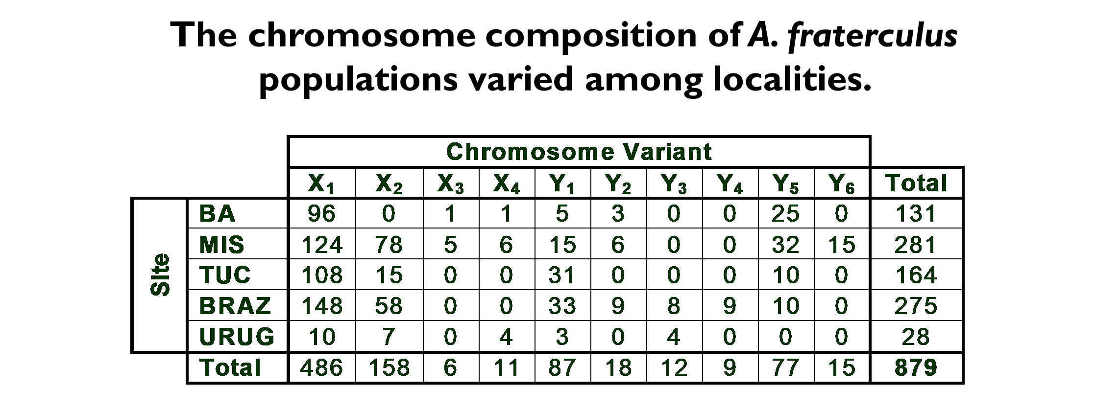 But we have determined the karyotype of 879 individuals from Argentinian Brazilian and Uruguayan populations and studied the chromosome x site interaction.10 All those natural populations showed chromosomal polymorphisms differing in their frequencies among localities.
