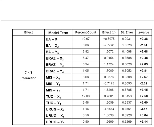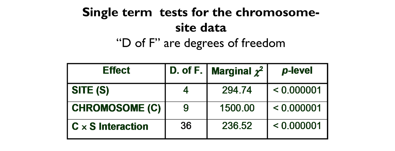Previously, we studied the single term tests for the chromosome x site data and the estimates and hypothesis testing of model parameters12 based on data from Argentina, Brasil and Uruguay.