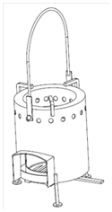 The thermo efficient crop residue based biomass cook stove was developed in Department of Unconventional Energy Sources and Electrical Engineering, Dr. PDKV, Akola in 2015-16. The photograph and an isometric view of the developed cook stove are shown in Figure 1. In experimental study cotton stalk was collected from University field. The selected cotton stalks were dried in oven at 110°C to bring about 4-8% moisture content. In present study, cotton stalks fuel was selected as it is available with the farmers at their own farm. From the proximate analysis of the selected cotton stalks showed very low ash content, highest carbon content and low sulphur content. The cook-stove performance tests had been performed as per Indian standard 13152: Part 1:1991 and modified draft December 2012.5 The complete experimental set up for performance evaluation of thermo efficient cook stove is shown in Figure 2. The various instruments viz., KANE 940 flue gas analyzer, infra red thermometer, temperature indicator, thermocouples (RTD), and weighing balance were used for evaluation of thermo efficient cook stove. A flue gas hand held analyzer of model KANE 940 was used for measuring the concentration of carbon monoxide present in flue gas. The flue gas velocity was measured by anemometer-vane probe of model AM 4201 at the out let of the hood for determination of flue gas flow rate. The flue gas flow rate was found out by the observations of flue gas velocity, cross sectional area of opening of hood and flue gas density.6,7 The fuel consumption rate was found out with reference to the BIS standard to determine the fuel burning rateper hour. To determine burning rate, the cook stove’s combustion chamber was filled up to 3/4 of the height of cook stove as recommended by BIS procedure. Initial and final weight of the cook-stove with weighed test fuel was measured before lighting the fuel.8,9 The further method and steps were adopted as per BIS testing norms and the fuel consumption rate was determined. On the basis of fuel consumption rate the heat input per hour was estimated using the following equation.