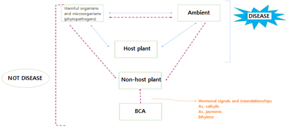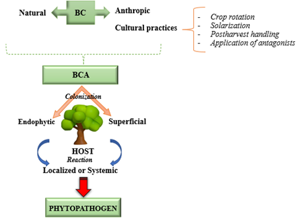 Plants are subject to changing environmental conditions, sometimes they can be unfavorable and must adapt to survive, in the same way as against potentially harmful microorganisms (viruses, bacteria, fungi, among others) even with insects and nematodes. However, when the plant is a natural host, an interaction between the plant and the pathogen is established, which can lead to the development of the disease. The opposite occurs when in nature the most frequent situation is one in which the plant is not a natural host of a pathogenic organism, which does not cause any detrimental effect due to the presence of self-regulation mechanisms.4,25 This self-regulation of populations of living beings is another way of calling BC.4