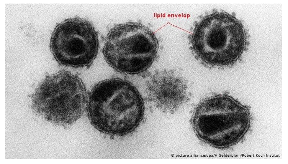 When Virus first enters the human body or human blood stream the virus start circulates throughout the body. The protective surface of virus is study with particular protein called receptor and lipid membrane envelop inside the capsid that contain a genetic material and viral enzyme. Protein on the virus is only able to bind with a cell surface called cell receptor. From the given Diagram viruses Receptor attached with Lipid envelops. The discovery of structure of the any viruses mainly lipase has made the identification of its inhibitors. Lipase which breaks down lipid envelope of virus which in return stops its replication and outbreak.