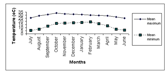 The river water quality in the study area fluctuates with time and depends much on effluent discharged at point source and non-point source discharge outfalls. Surface water temperature was narrow (21.8-26.5°C) with a mean of 24.3°C, conductivity values were between 170.2 mScm-1 and 567.4 mScm-1 (April and May) with a mean of 305.5mScm-1.