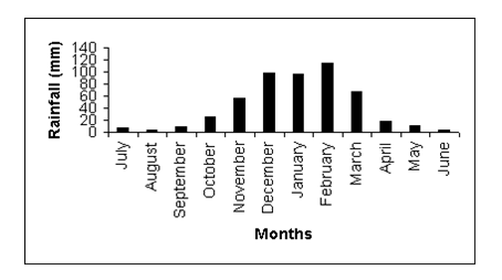 Figure 4 Mean monthly rainfall at Gonarezhou National Park based on data collected over 31 years (Source: Department of Meteorological Services, Harare).