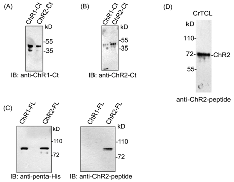 ChR2 peptide antibody doesn’t cross-react with closely related ChR1 protein