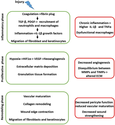 Figure 4 Comparison of normal wound healing (left), with diabetic wound healing process (right).8