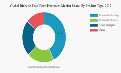 Considering product type, the segment of wound care dressings is expected to be the market leader (Figure 9).16 A few primary reasons to explain this trend is increasing focus on R&D market players, increased launches and escalating awareness of advanced products, and soaring rates of healthcare expenditure.16 Another segment that is expended to grow considerably is that of wound care devices, as new therapeutic devices such as negative pressure wound therapy and extracorporeal shock wave therapy are becoming more popular.16 Wound care devices allow for reduced healing time at lower costs, so this is likely a contributing factor to their growing appeal.16 The active therapies segment also has a significant share in the market, and is also expected to increase.16 This segment includes skin substitutes and skin grafts, growth factors, sealants, and hemostatic agents.16 Novel applications of these treatment options, as well as more existing alternatives are expected to cause this segment to grow.16