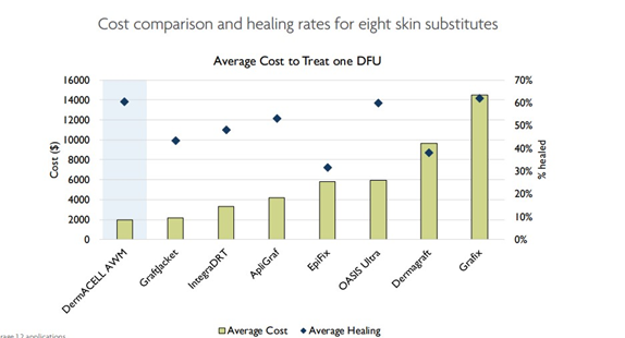 Figure 11 Cost Comparison and healing rates for 8 skin substitutes for DFU, as of 2020.31