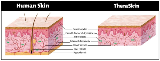 Creates a three-dimensional dermis that is replaced as a graft; |