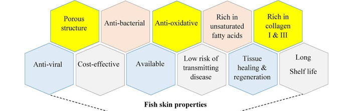 -Piscine, no risk of disease transmission[71] -Promotes more migration into scaffold than amnion/ chorion grafts |