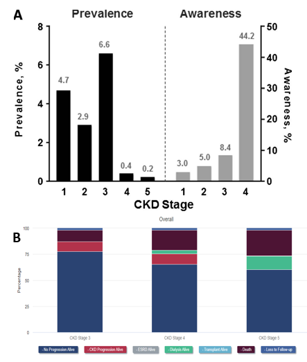 (A) Almost half of patients with CKD are not aware of any underlying kidney damage prior to stage 4.18