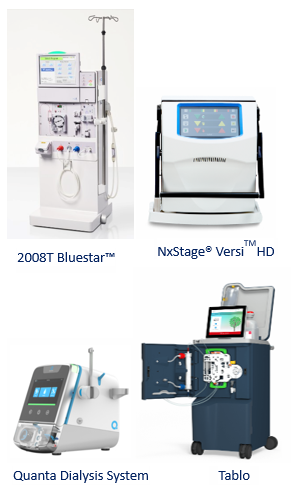 Figure 4 Selection of available in-center and in-home hemodialysis machines.