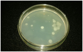 The bacterial colonies of K. pneumoniae (isolated from root bark necrosis symptoms on nutrient medium), were creamy white, circular, raised, fluidal with 2-3mm growth diameter within 72hrs (Figure 2). The colonies of K. variicola were also creamy white, circular, raised, fluidal with 2-3mm growth diameter within 72hrs. There was no difference in the colony characteristics of both bacteriua.