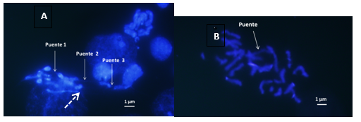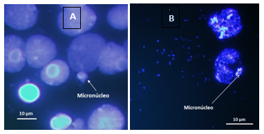 Micronúclei (MN) were observed in cytological preparations from strain 294 and from colony EEAOC (Figure 5).