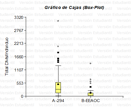 Table 4 Summary measures for 294 and EEAOC (InfoStat, 2017)For a better visualization of the data, a box-plot graph was made (Graph 1).