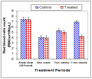 Figure 1 Effect of acute or chronic treatment of albino rats with cyclosporine A on red blood cells count.