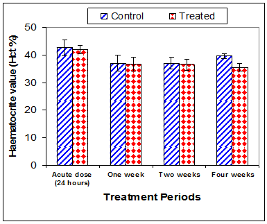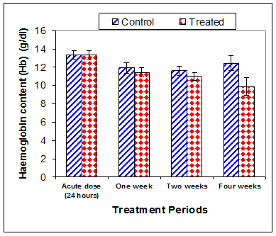 Figure 2 Effect of acute or chronic treatment of albino rats with cyclosporine A on haemoglobin content.