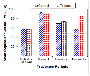 Figure 4 Effect of acute or chronic treatment of albino rats with cyclosporine A on mean corpuscular volume.