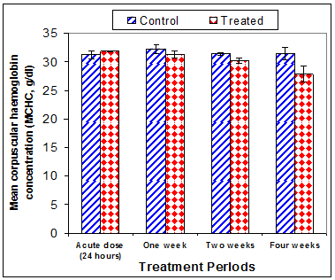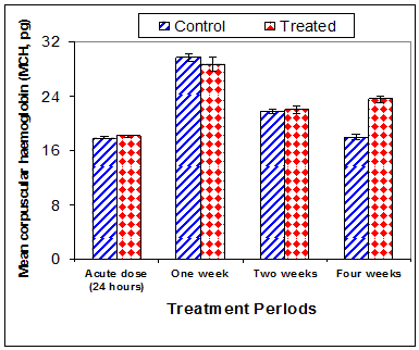 Figure 5 Effect of acute or chronic treatment of albino rats with cyclosporine A on mean corpuscular haemoglobin.