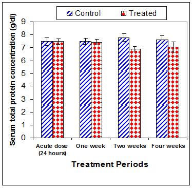 Figure 13 Effect of acute or chronic treatment of albino rats with cyclosporine A on serum total protein concentration.