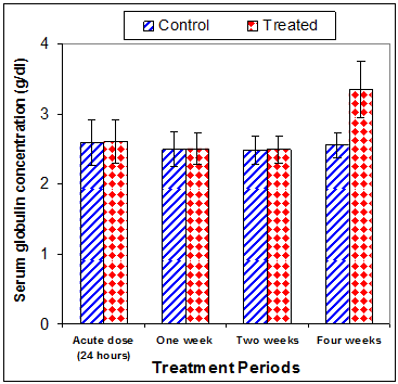 Figure 15 Effect of acute or chronic treatment of albino rats with cyclosporine A on serum globulin concentration.