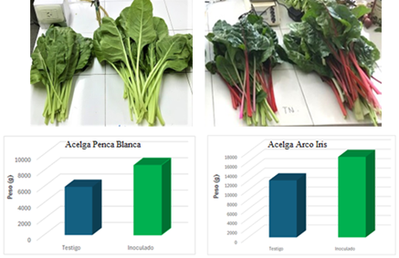 Therefore, it is concluded that inoculation with the microbial consortium composed of the bacterium Azospirillum brasilense and native mycorrhizal fungi positively influences the cultivation of the varieties of Swiss chard (Beta vulgaris L. subsp. cicla) Penca blanca and Arco iris, improving yield, health and safety, fundamental characteristics to achieve the success of the crop. This shows the potential of the bacterial strain and mycorrhizal fungi tested as a biofertilizer for the agroecological production of chard crops.