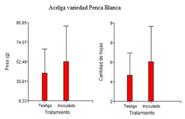 In the two varieties of Swiss chard evaluated, the application of the microbial consortium produced results that exceeded the control treatment, results consistent with those obtained by Ardisana et al.19 who studied the effect on the growth of chard (Beta vulgaris L. subsp. cicla) plants of two biostimulants made with vermicompost leachates (Figure 1).