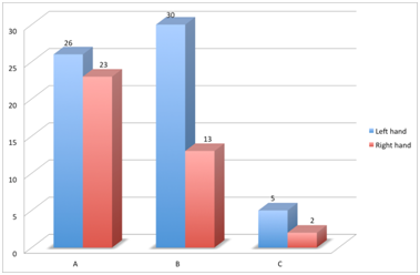 Because the left hand carries information about the right half of the cerebral cortex,5 such laterality confirms the literature data indicating increased functional activity of the right hemisphere in individuals with hypertension.11
