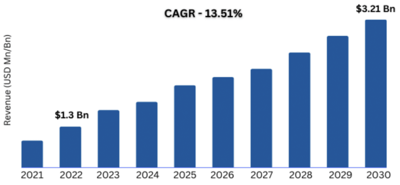 As demonstrated in Figure 3, the endometriosis treatment market is expected to see continued expansion.6 The global endometriosis treatment market size was valued at approximately USD 1.3 billion in 2022 and is projected to reach USD 3.21 billion by 2030, with a compound annual growth rate (CAGR) of 13.51%.6 Key factors contributing to this growth include increasing awareness of the condition, advancements in diagnostic techniques, and the development of novel therapeutics.6-9
