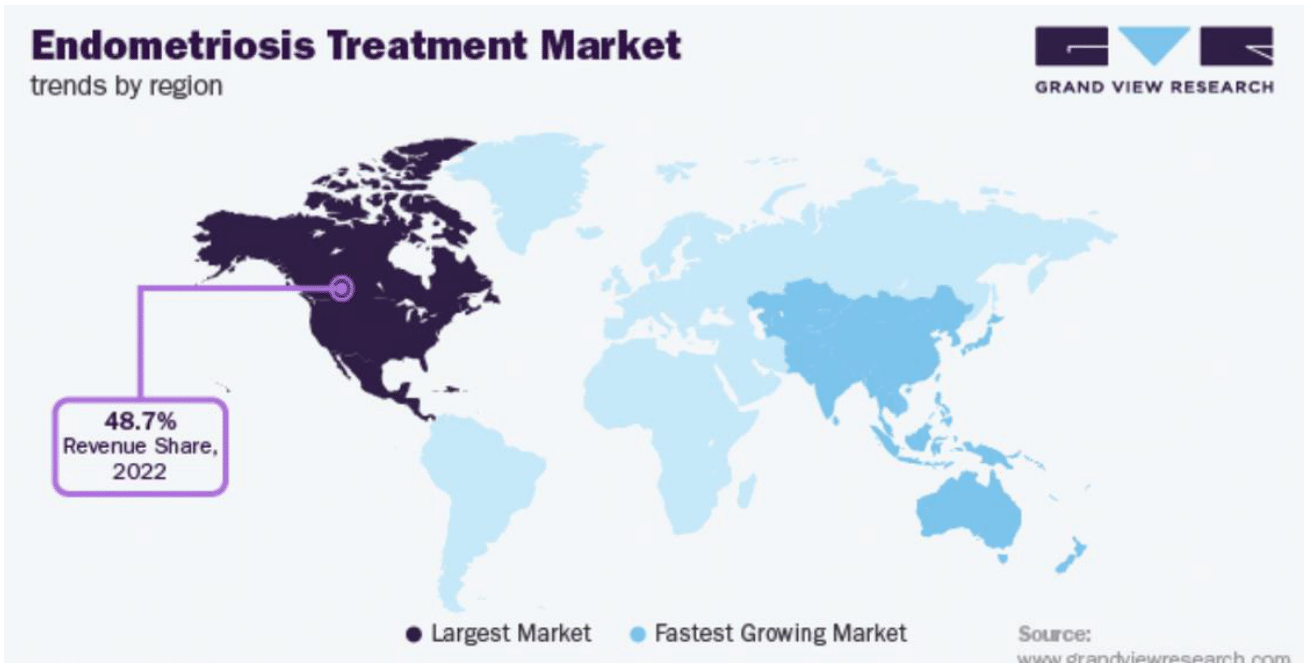 The image demonstrates the trends in the endometriosis treatment market across different geographical regions, illustrating regional variations in market growth, and the largest market.