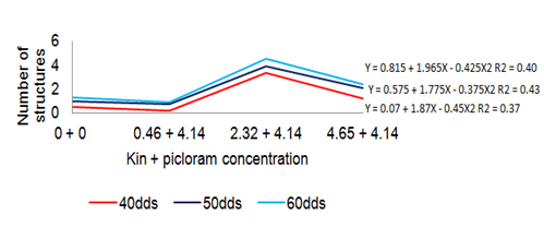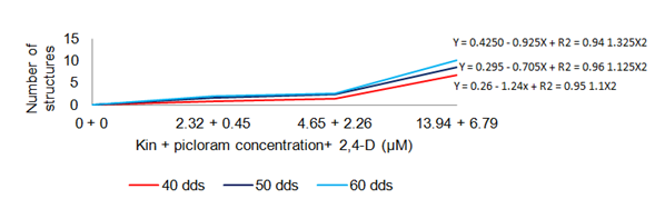 Figure 4 Schematic comparison of the development of EPE (40-60) dds Cycas revoluta, under the effect of kin+picloram (source of nitrate 50%).