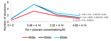 Figure 3 Schematic comparison of the development of EPE (40-60 dds) of Cycas revolute, under the effect of kin+picloram (inorganic salts 50%).