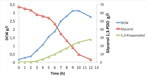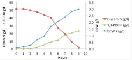 Table 6 Batch Culture of K. pneumoniae GLC29 in Biodiesel Glycerol. DCW: Dry Cell Weight; 1,3-PDO; 1,3-propanediol