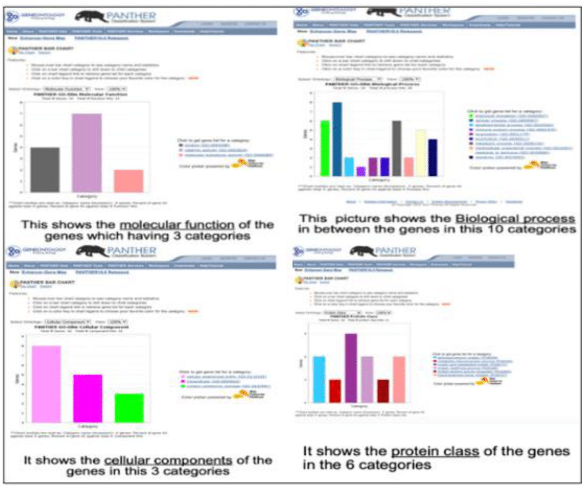 DisGeNET was used to extract significant gene-disease association data related to ALM. Our focus was on genes with noted variations such as PLD1, CDKN2A, KIT, TERT, and NRAS. Each gene was evaluated for its role and type of association with the disease, including altered expression, genetic variation, and biomarker potential. PANTHER DB was employed to categorize genes involved in Acral Lentiginous Melanoma based on their molecular functions, biological processes, and the pathways they are involved in. This classification system is instrumental in translating genomic data into actionable biological insights, which is crucial for identifying